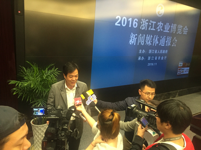 11月21日,2016浙江农业博览会新闻媒体通报会在杭州召开。新华社、中新社、浙江日报、浙江卫视、浙江之声、浙江在线、杭州日报、杭州电视台等四十余家媒体记者参加通报会。总农艺师蔡元杰出席会议并介绍有关情况。