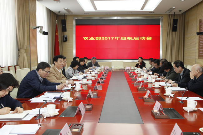 本网讯 4月6日,农业部召开2017年巡视启动会,部署巡视工作任务,开展巡视工作交流。根据安排,2017年组成3个巡视组,对8家部属单位开展政治巡视、对2家单位开展巡视“回头看”、对2家单位探索开展“机动式”巡视,实现十八大以来巡视全覆盖的目标任务。部党组成员、驻部纪检组组长宋建朝出席会议并讲话。
