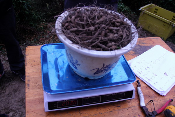 3月14日,市蔬菜管理办公室、林燚名家工作室组织行业专家,对浙江豆豆宝中药研究有限公司三叶青示范基地进行考察,该基地位于箬横镇李桥村,基地面积130亩,采用设施控根容器栽培。专家组对其三年生本地种(当地俗称小尖叶三叶青)进行了测产,根据梅花型方法抽样测算,产量高达531.25公斤/亩。