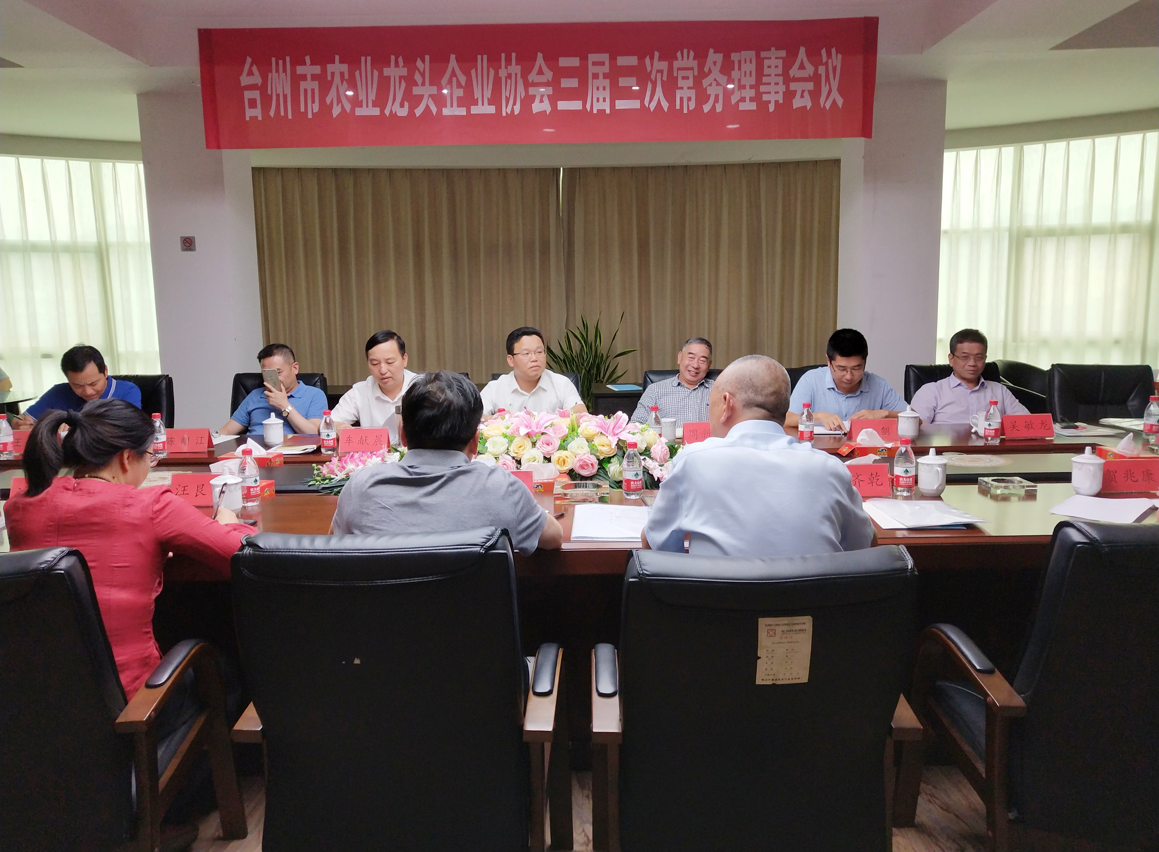 台州市农业龙头企业协会三届三次常务理事会议于2019年6月12日在黄罐食品股份有限公司顺利召开。参加会议的有:赵仁川会长,副会长胡齐乾、徐雪野、倪卫清、贺兆康、汪艮华,常务理事潘华南、陈诚杰、林彬等,并邀请了黄岩区理事陈云清参会,请假3位。市农业农村局局长潘崇敏、市农业农村局总农艺师周新革、黄岩区副区长车献晨、黄岩区府办副主任陈明江、黄岩区农业农村局副局长王立宏、黄岩区江口街道办事处副主任钟剑等应邀出席了本次会议。